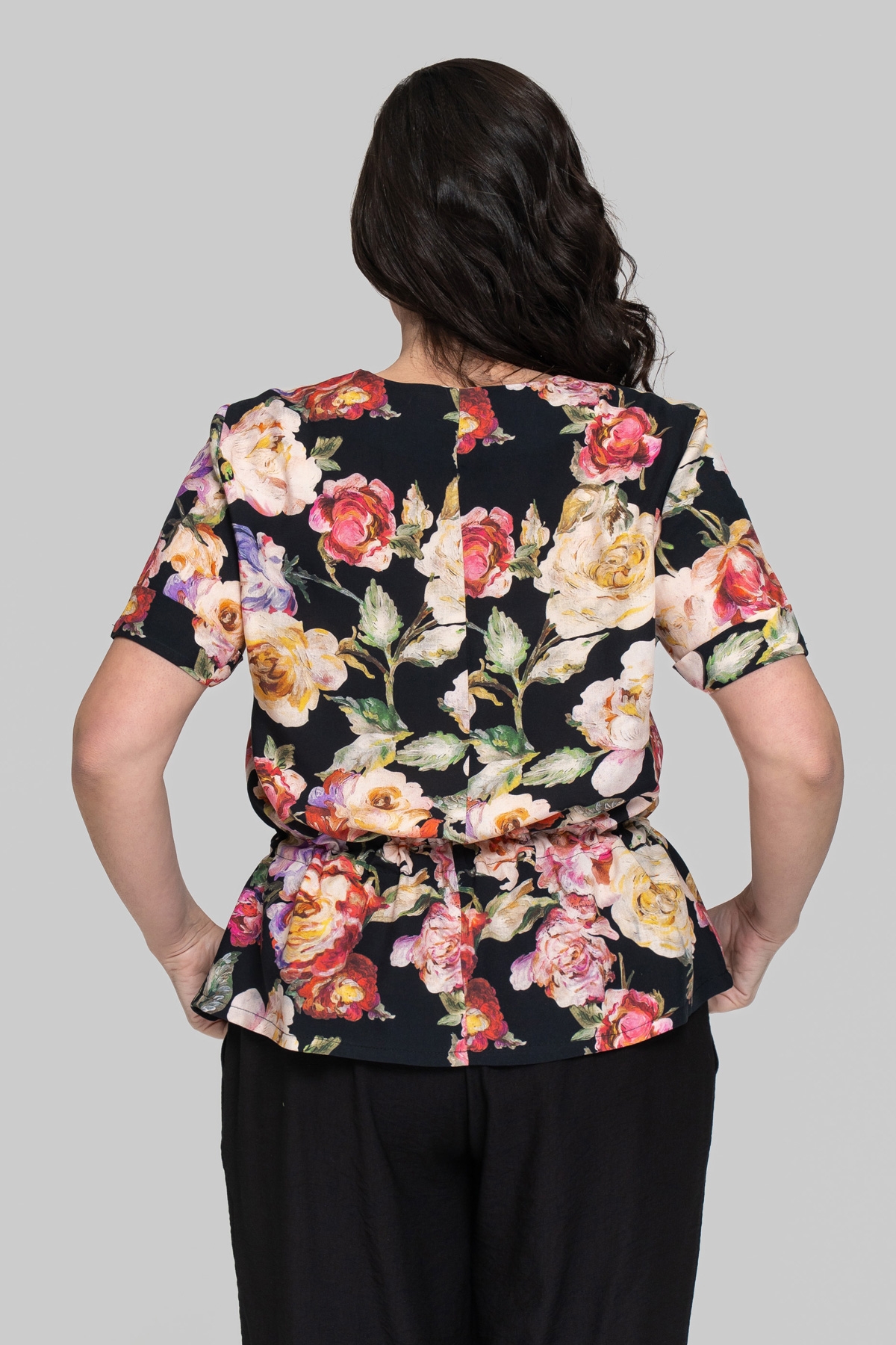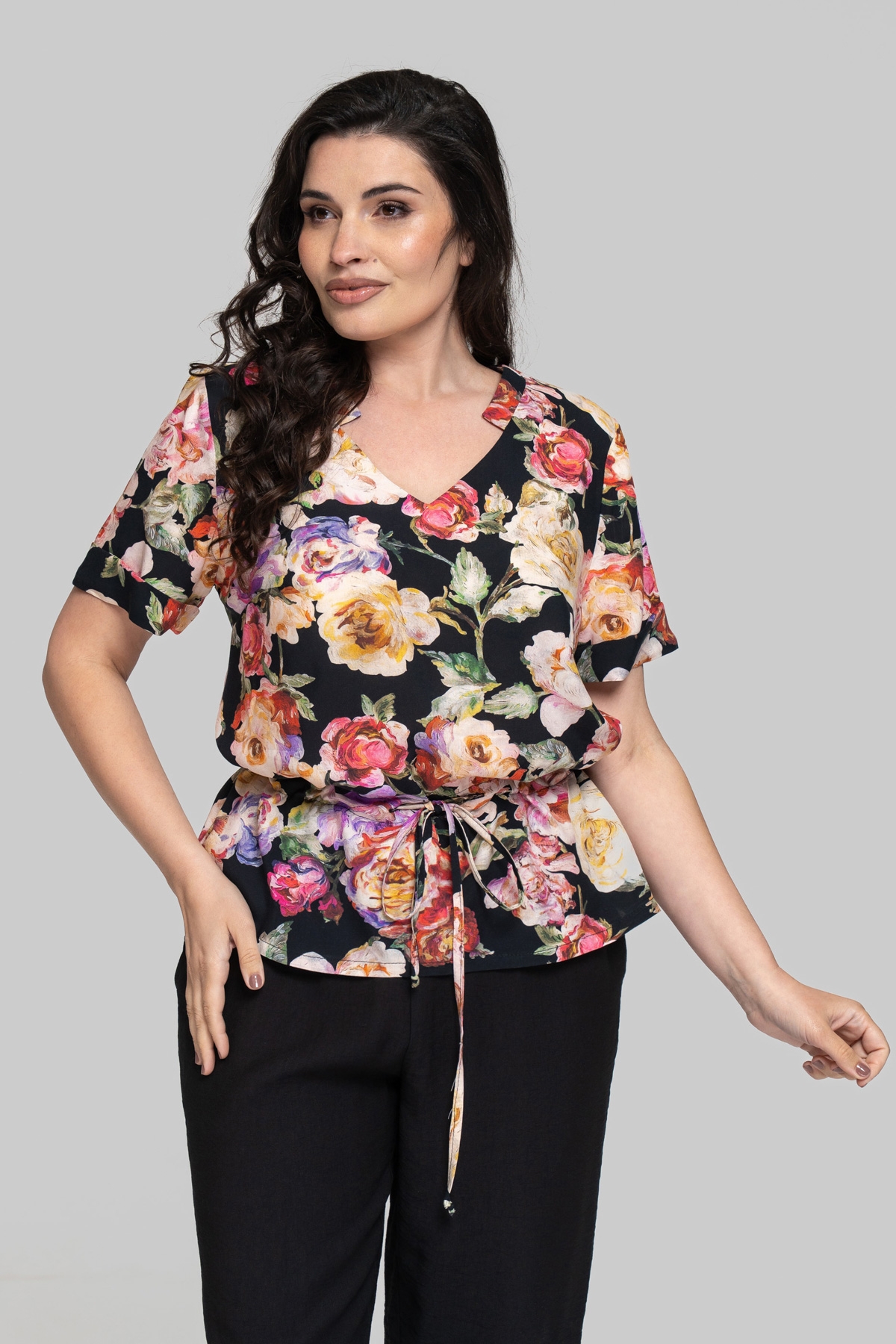 Блуза прямого силуэта без подкладки с V-образным вырезом. Выполнена из штапеля. Ткань легкая и тактильно приятная, но также обладает повышенной прочностью и практичностью, что отлично подходит летним моделям для повседневного использования. Рукав втачной, одношовный. По линии талии выполнена кулиса с шнуром.