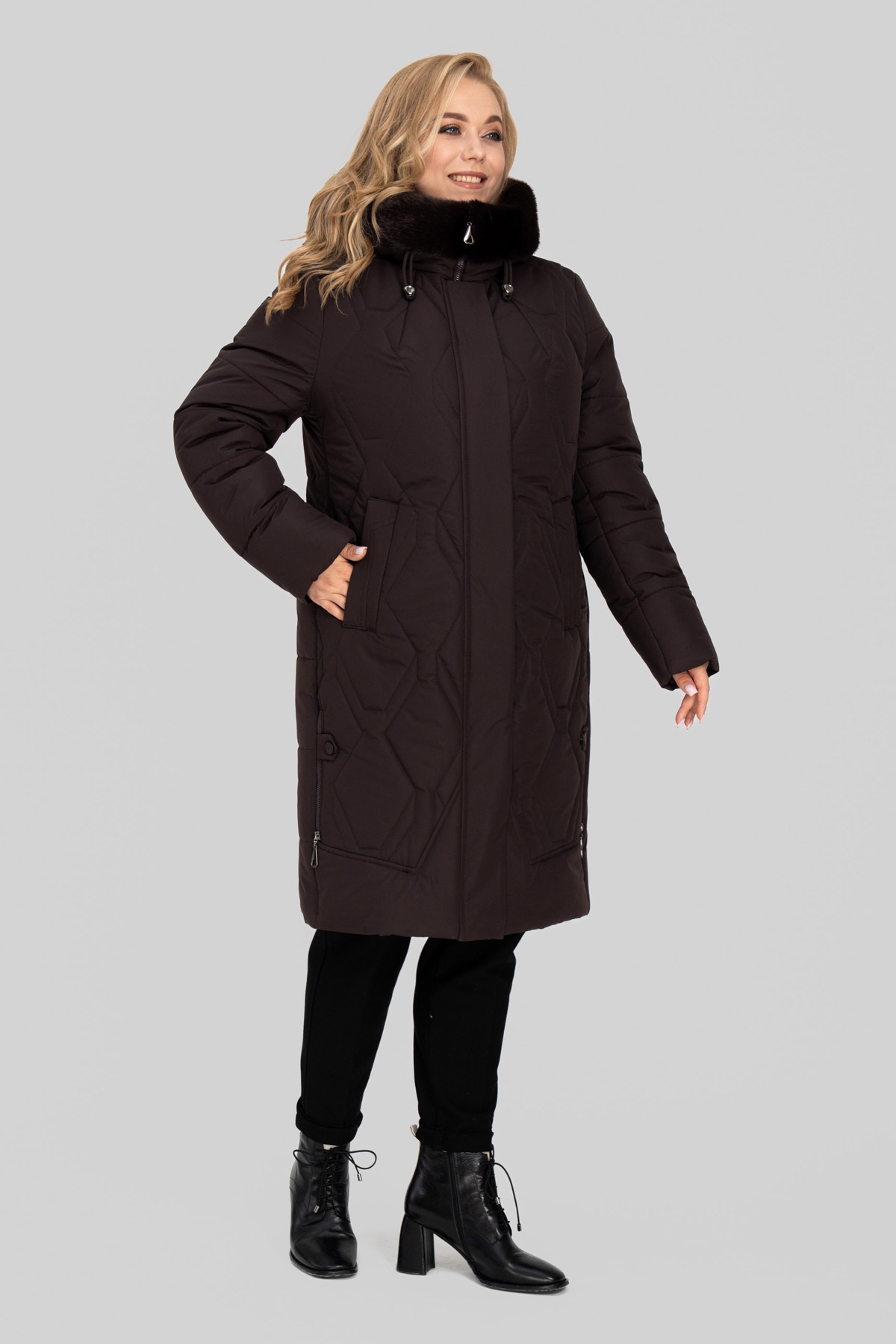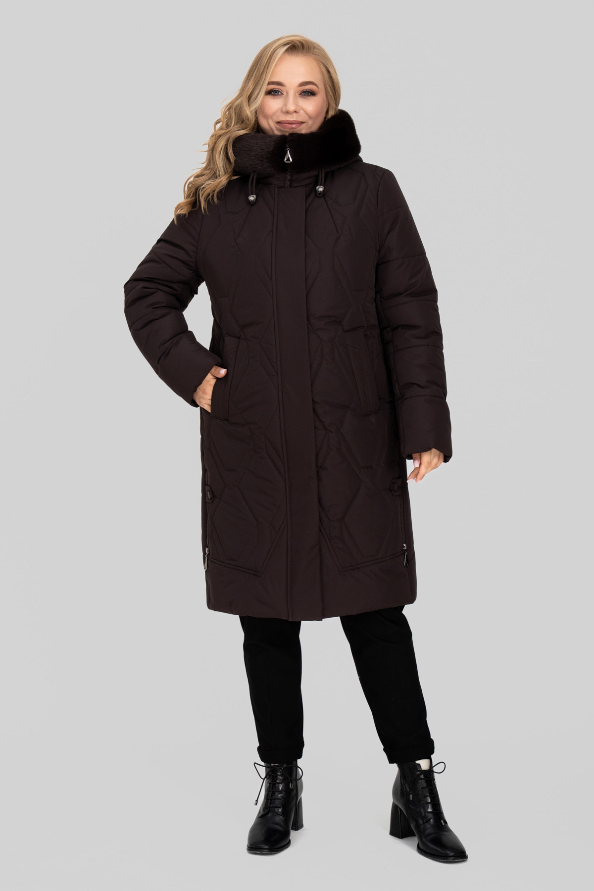 Зимнее пальто прямого силуэта, выполнено из матовой плащевой ткани на мембранной основе с дополнительной влагоотталкивающей пропиткой. Наполнитель: тинсулейт 150 + 80 г/м² (до -19 °C).