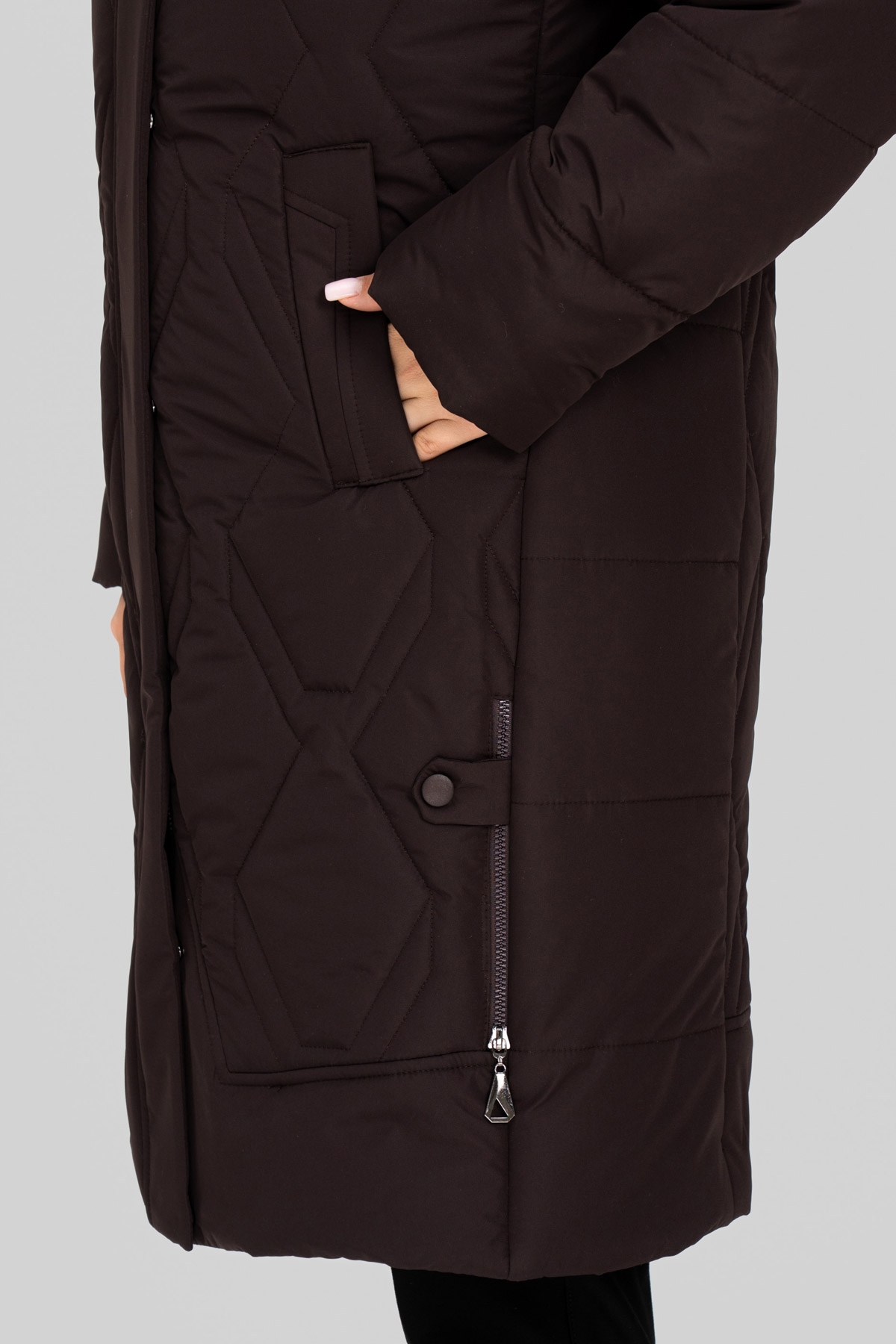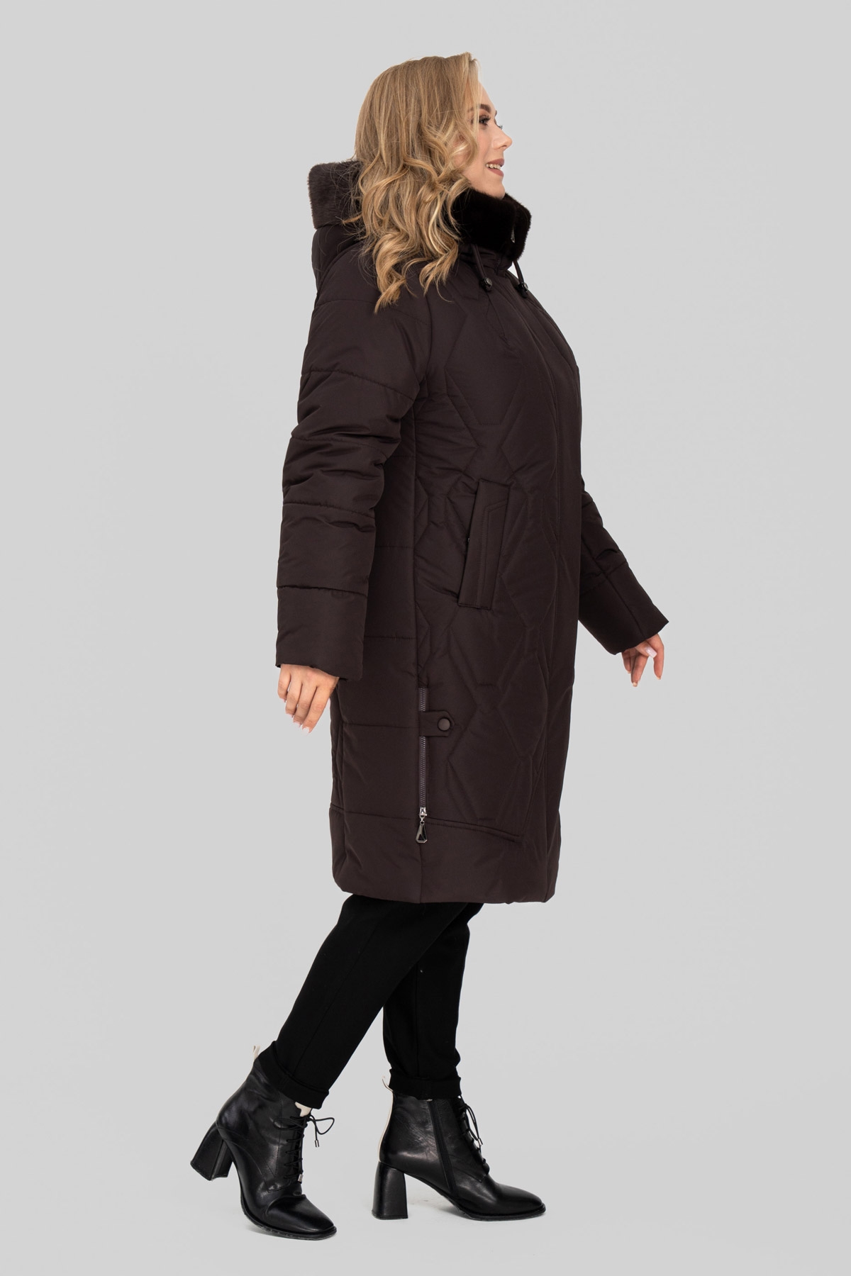 Рукав втачной, двухшовный, внутри трикотажные манжеты. Карман с листочкой и застёжкой на потайную кнопку. Боковой шов декорирован молнией и патом на кнопку. Капюшон втачной, опушка украшена искусственным мехом. Застёжка на молнию и планку на кнопках, что дополнительно защитит от ветра.