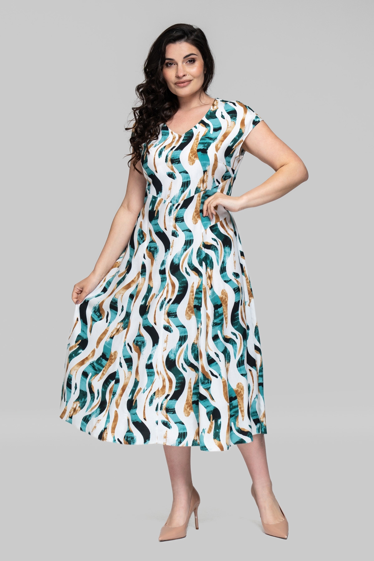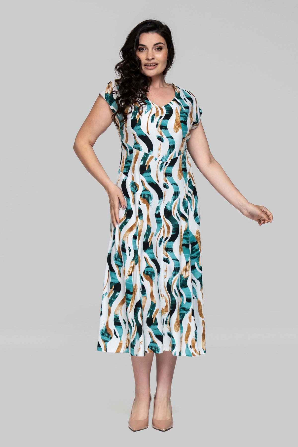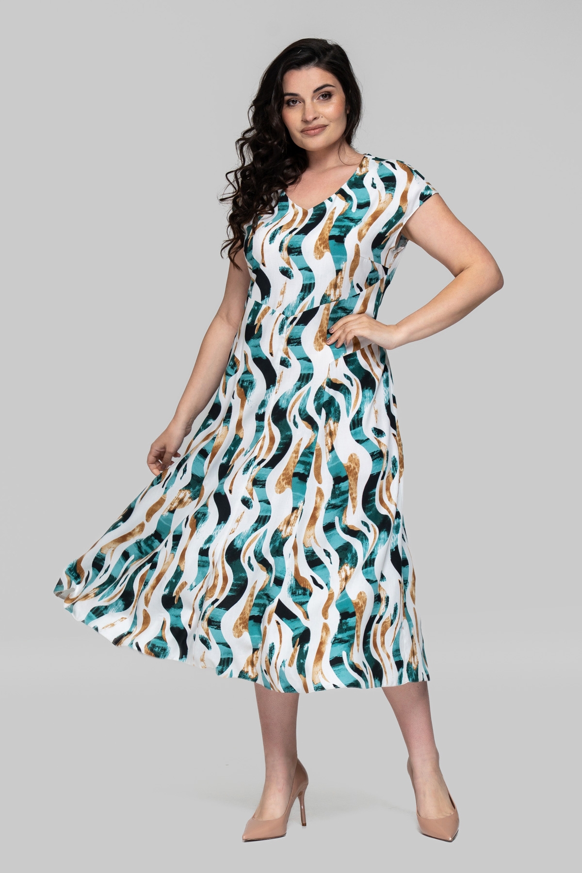 Сарафан напівприлягаючого силуету. Виконано зі штапеля (Туреччина). Тканина легка і тактильно приємна, але також має підвищену міцність і практичність. Плече спущене, по поличці і спинці виконані декоративні підрізи.