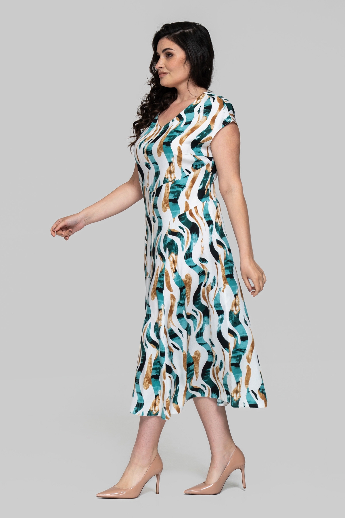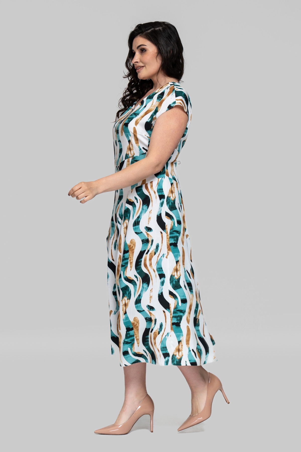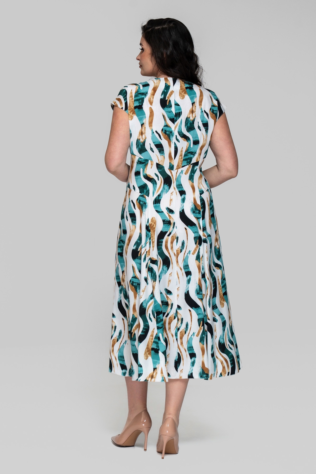 Сарафан напівприлягаючого силуету. Виконано зі штапеля (Туреччина). Тканина легка і тактильно приємна, але також має підвищену міцність і практичність. Плече спущене, по поличці і спинці виконані декоративні підрізи.