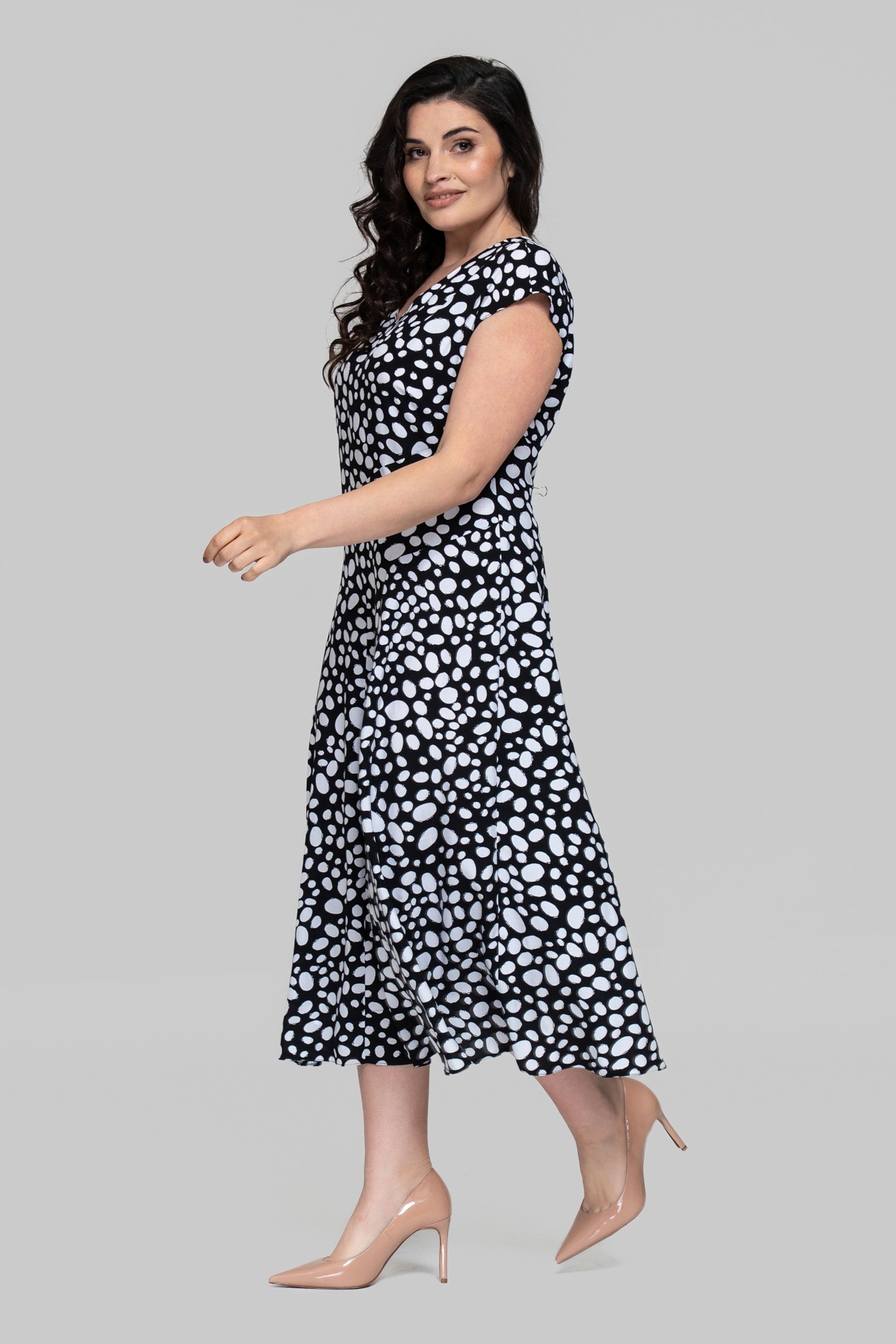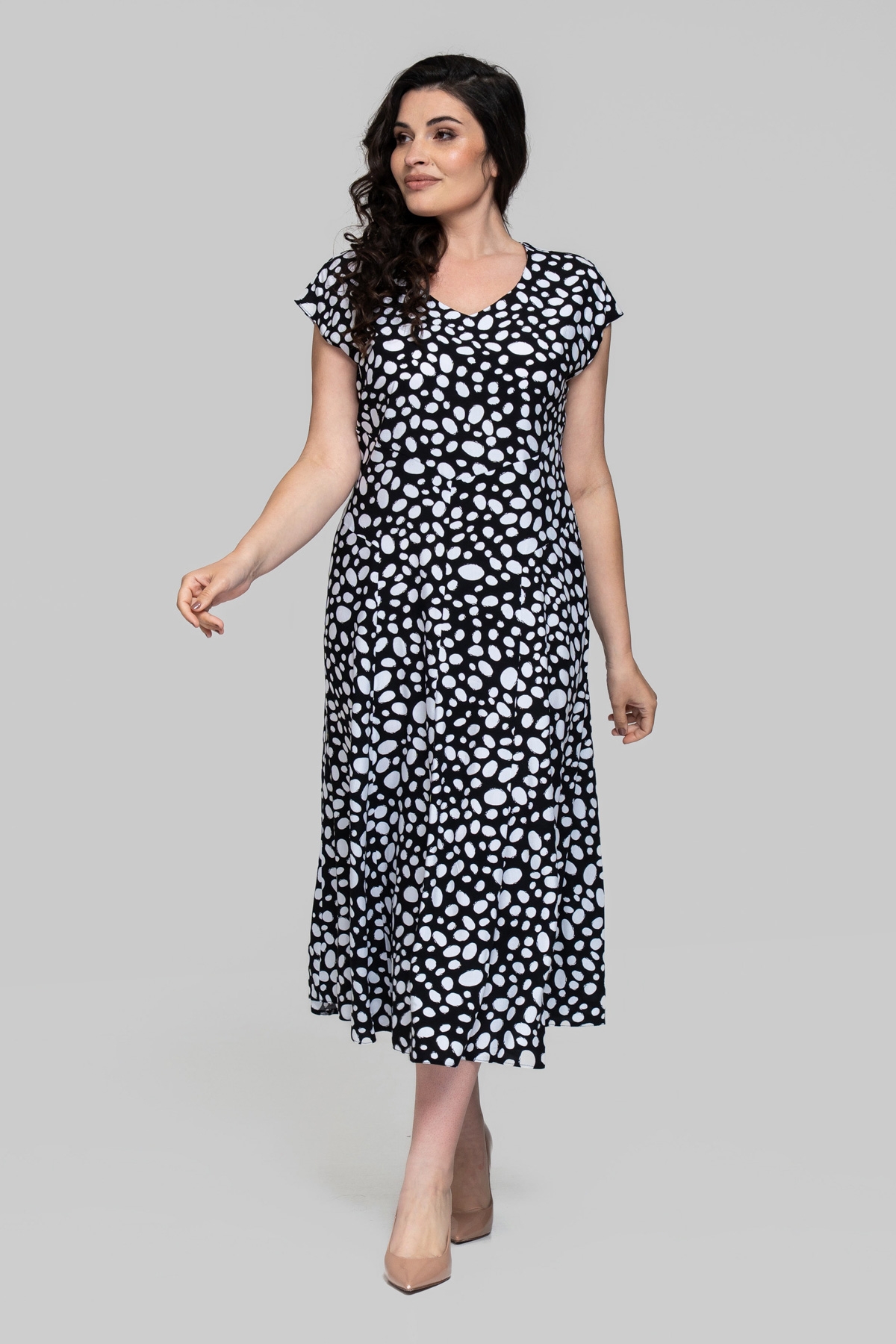 Сарафан напівприлягаючого силуету. Виконано зі штапеля (Туреччина). Тканина легка і тактильно приємна, але також має підвищену міцність і практичність. Плече спущене, по поличці і спинці виконані декоративні підрізи.