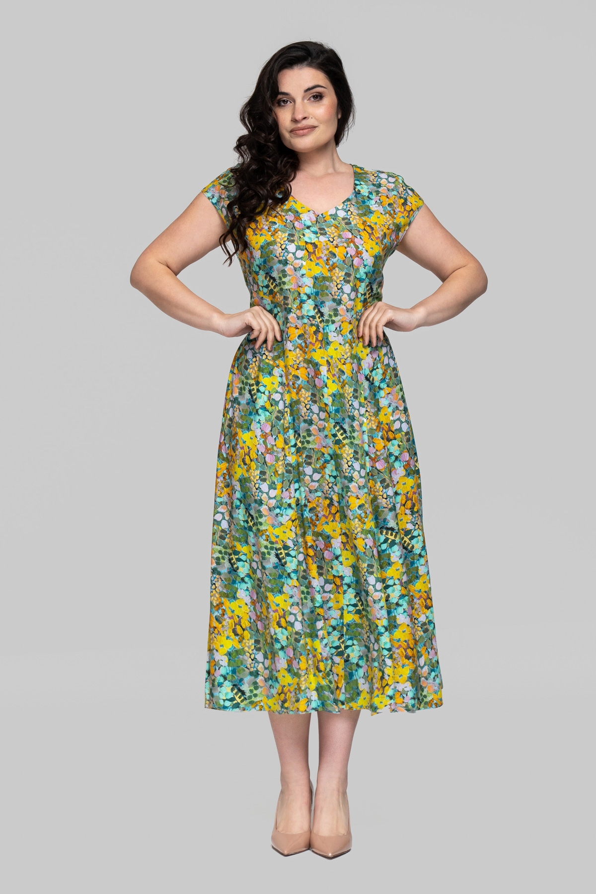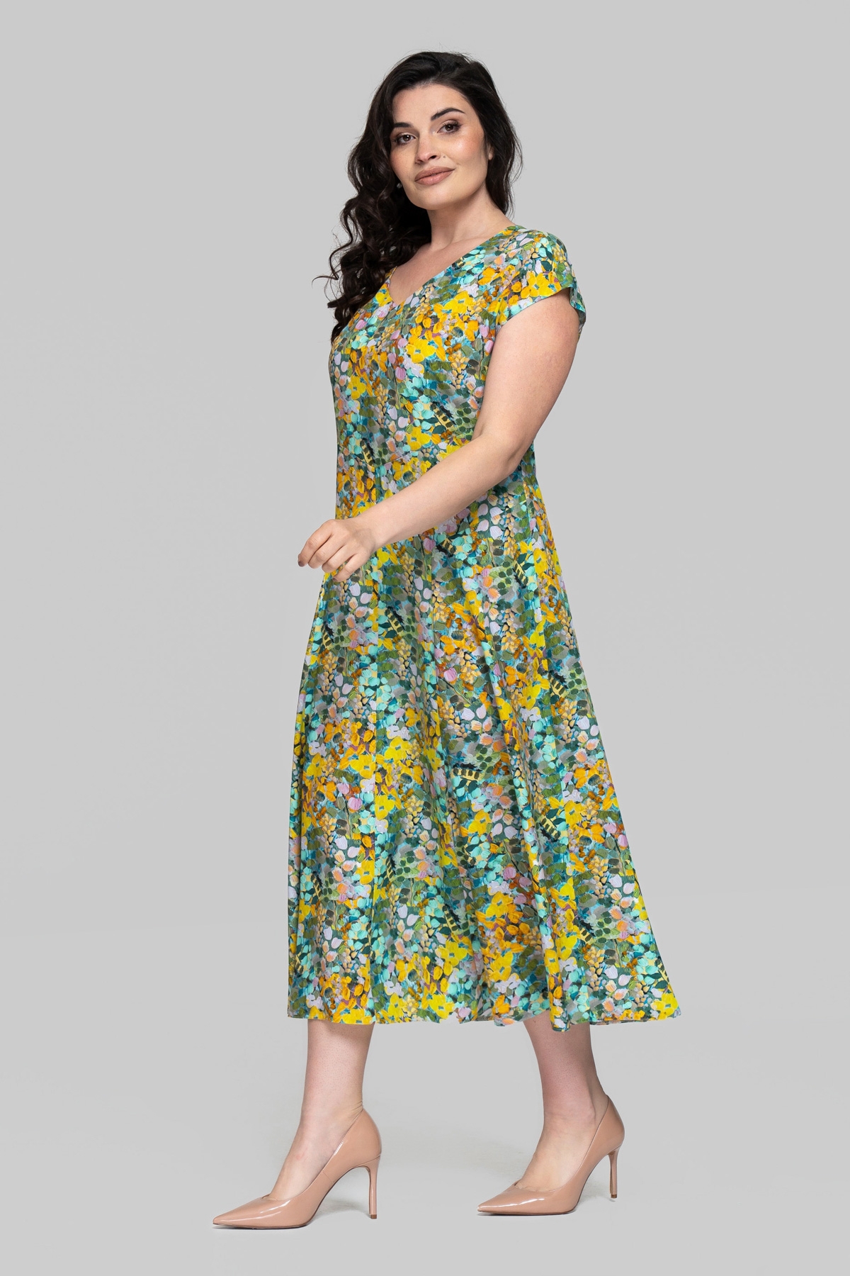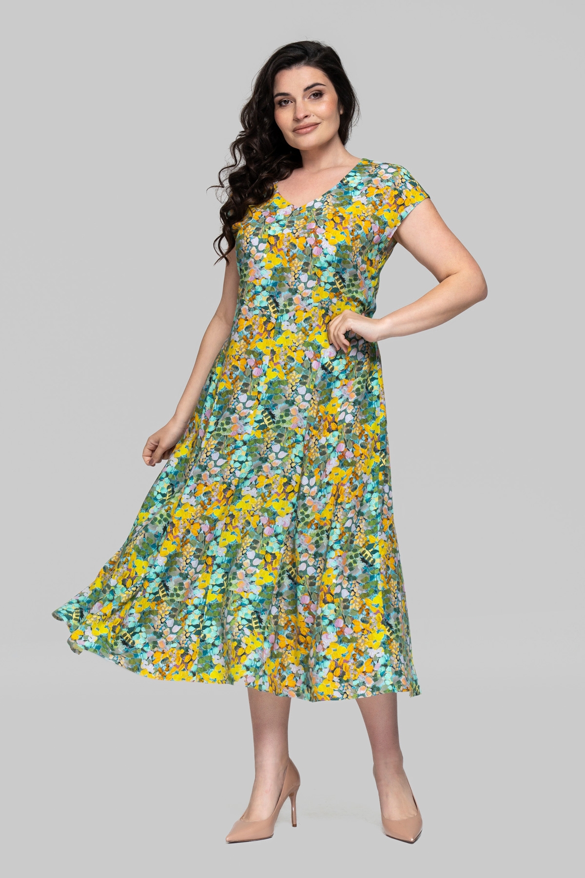 Сарафан напівприлягаючого силуету. Виконано зі штапеля (Туреччина). Тканина легка і тактильно приємна, але також має підвищену міцність і практичність. Плече спущене, по поличці і спинці виконані декоративні підрізи.