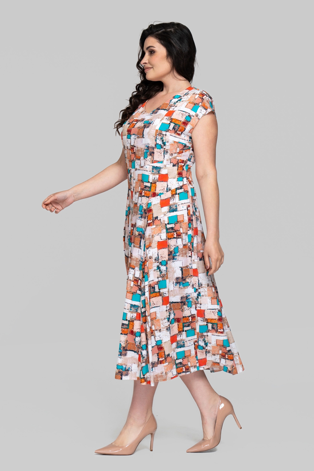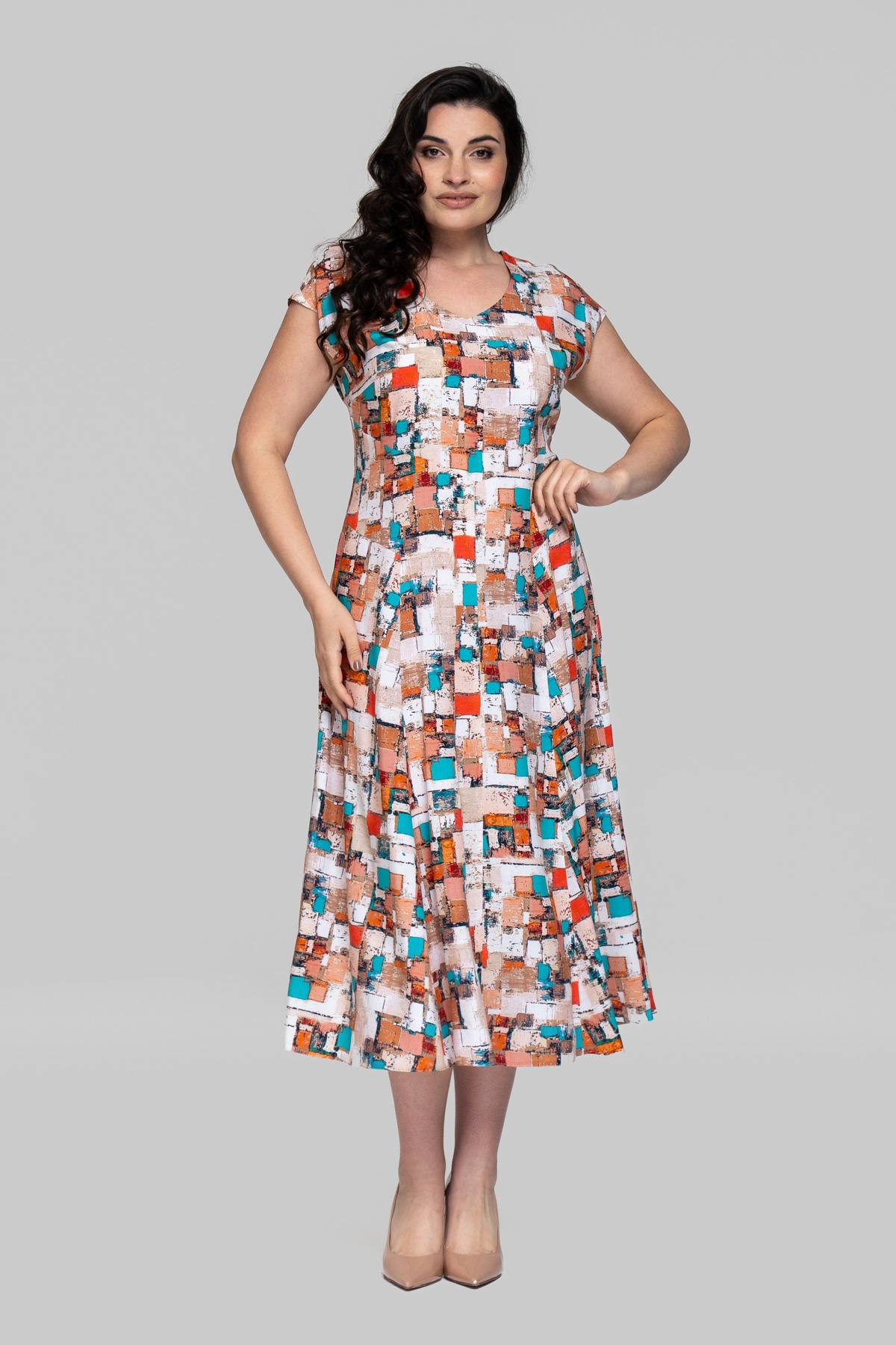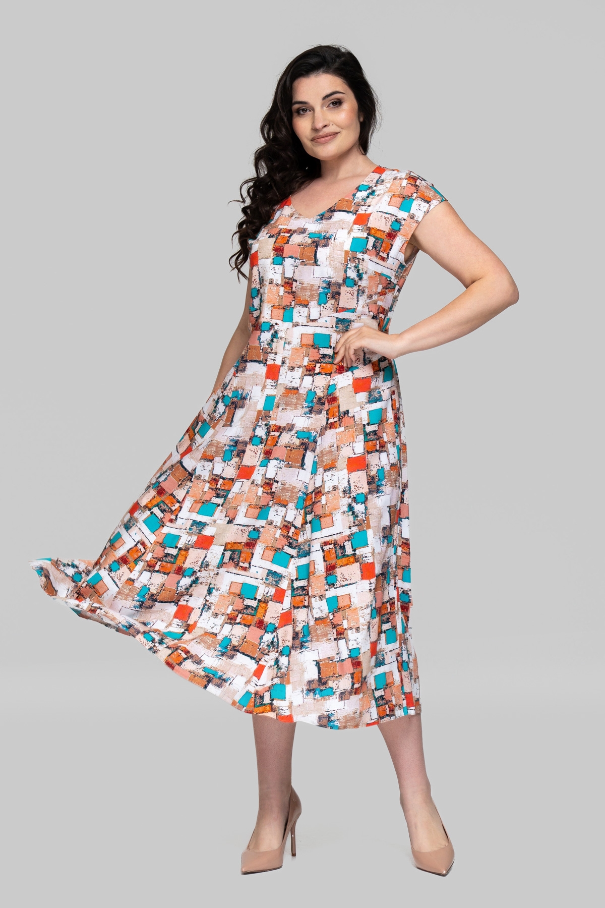 Сарафан напівприлягаючого силуету. Виконано зі штапеля (Туреччина). Тканина легка і тактильно приємна, але також має підвищену міцність і практичність. Плече спущене, по поличці і спинці виконані декоративні підрізи.